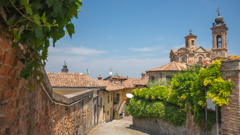 Ti capiterà spesso di fermarti per guardare i dettagli dei portoni, le ringhiere in ferro, le pietre consunte dai secoli; e, ogni tanto, di buttare uno sguardo oltre un muretto per ritrovarti le Langhe sotto di te, distese in silenzio.